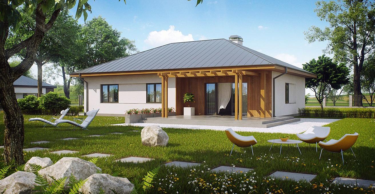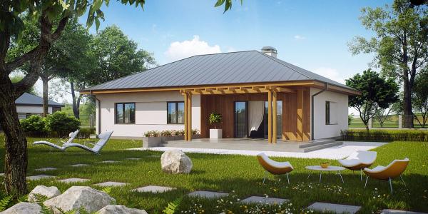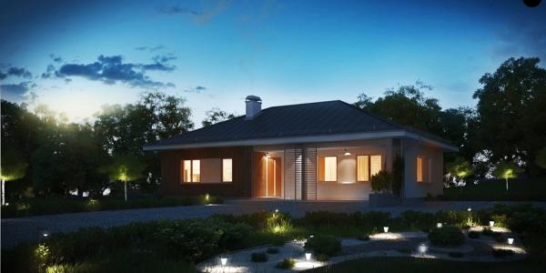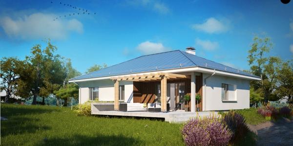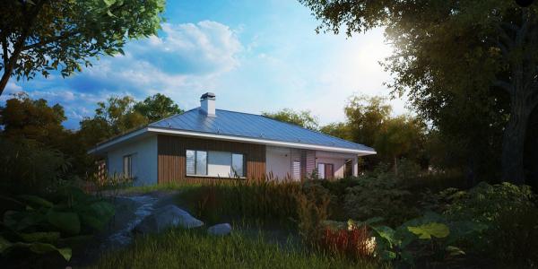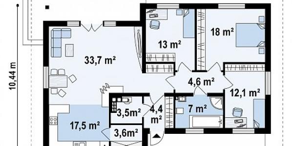 Проект — это небольшой одноэтажный функциональный дом. Простая конструкция, четырехскатная крыша уменьшают стоимость затрат на строительство. Этот проект идеально подходит для тех, кто ищет удобный и уютный одноэтажный дом. В дом можно попасть через прихожую, где легко размещается шкаф для одежды и обуви. С тамбура есть вход в подсобное помещение. На относительно небольшой площади дома размещено все что нужно. Для комфортности дом разделен на две зоны. К дневной зоне относится большая гостиная с открытой кухней. В кухне есть кладовая, где можно хранить продукты питания или дополнительное кухонное оборудование. Через большие балконные двери можно попасть на задний двор. В правом крыле здания расположена ночная зона, состоящая из двух комнат и большой спальни. В каждой комнате запланировано место для большого шкафа. К ночной зоне относится также ванная комната. это дом с очень практичной и функциональной планировкой. Классические элементы фасада вносят изюминку в его внешний вид, хорошо продуманная планировка и простая конструкция здания придают ему компактный и оригинальный вид. Это идеальный выбор для тех, кто ищет небольшой и удобный одноэтажный дом.
