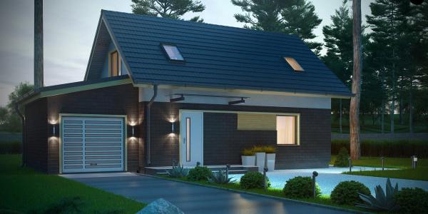 Это проект компактного аккуратного дома с гаражом и мансардой, который привлечет своим уютом благодаря комфортной панировке и гармоничным пропорциям.