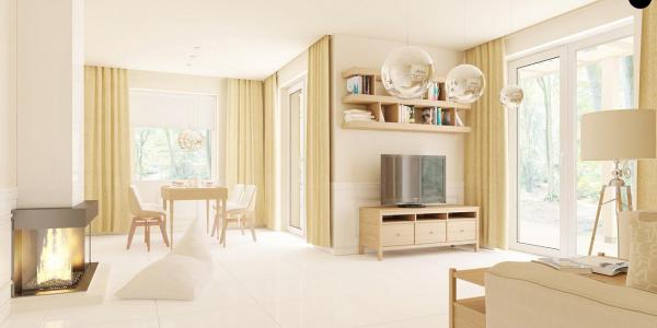 Проект представляет собой небольшой и очень милый дом. Естественные, деревянные аксессуары прекрасно смотрятся в сочетании с пепельной черепицей. Крытый вход поддерживают деревянные столбы. Благодаря наличию крытой террасы, здесь можно устроить пикник с грилем при любых погодных условиях. Основную часть проекта занимает просторная, светлая гостиная, которая очень деликатно отделена от столовой. Рядом есть камин, пламя которого охватывает все пространство дома. Кухня при помощи столешницы отделена от остального помещения. Благодаря такому дизайнерскому решению, можно получить дополнительное пространство и ощущение свободы. Остальную часть дома занимают две светлые, удобные комнаты. Каждая из них имеет отдельное место для большого шкафа. Между комнатами расположена удобная ванная комната. Маленькое окно позволяет наполнить ее естественным светом. Проект является идеальным вариантом для тех, кто ищет маленький и практичный дом. Он просто очаровывает своей деликатностью и вниманием к деталям. Вы убеждены, что это идеальный проект для вас? Чувствуете, что это будет ваше лучшее капиталовложение? Отлично! Мы ждем Вашего заказа! Помните, что вместе с проектом вы также можете заказать пакет дополнений для улучшения комфорта проживания и дизайн сада!