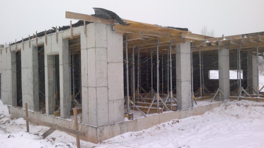 - Скорость строительства и минимизация трудозатрат: Возведение одного этажа занимает 1-1,5 месяца, а заливка бетона выполняется с использованием спецтехники.