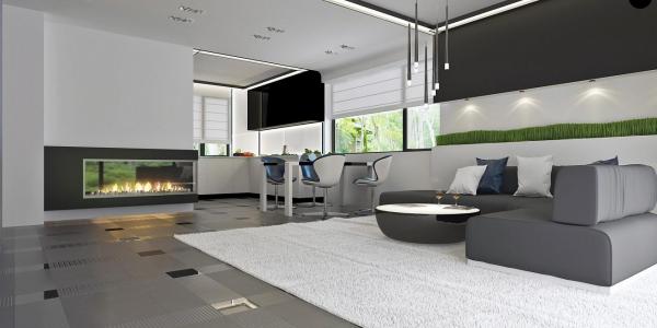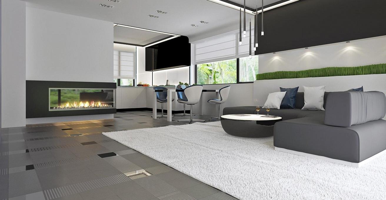 - Центральное место в общей части дома занимает гостиная, прекрасный камин, столовая.