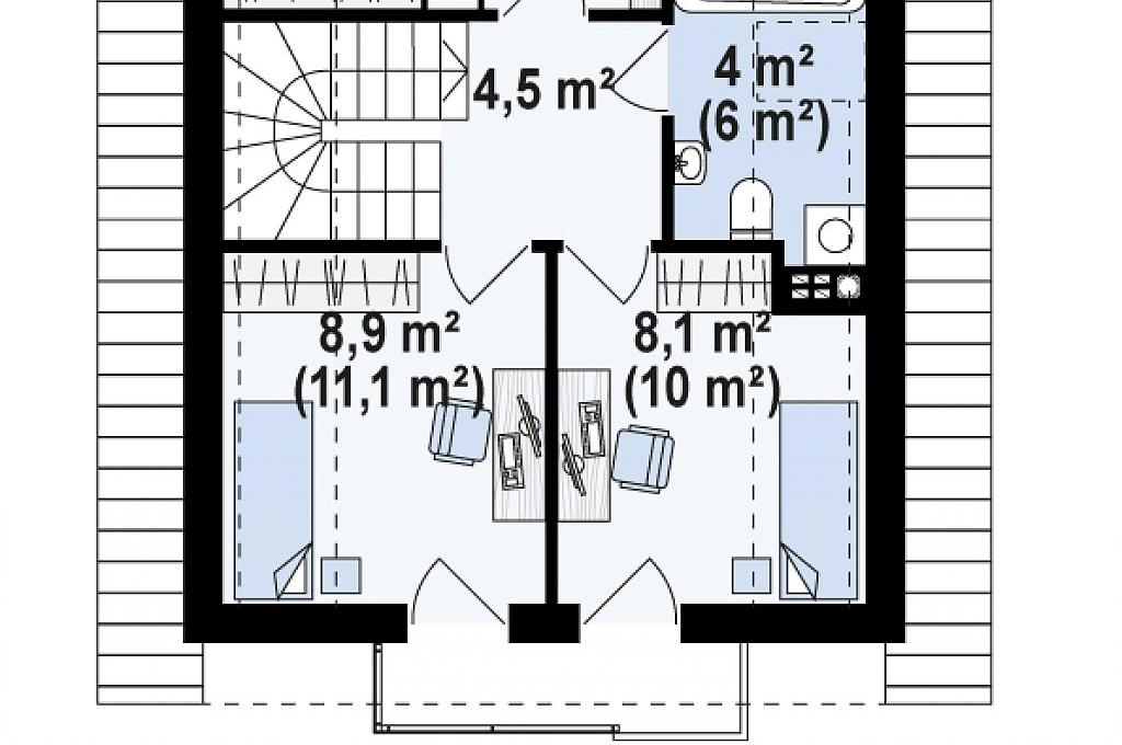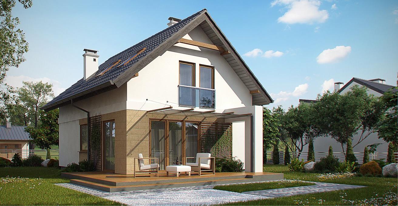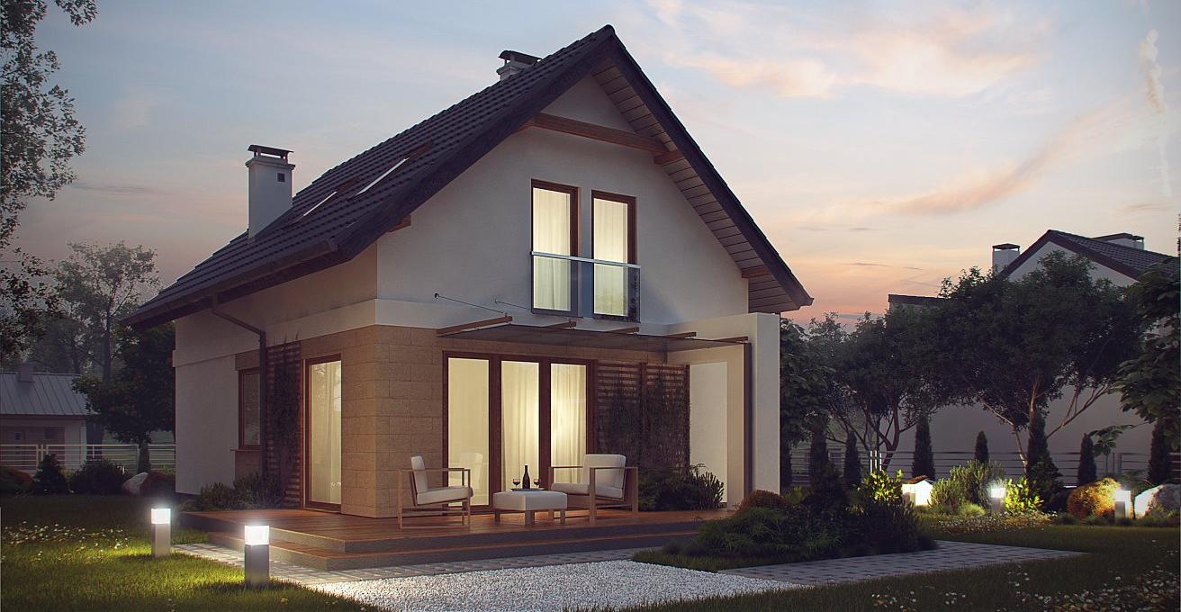 - простая форма дома, двускатная кровля, небольшая площадь и наличие мансарды; способствуют значительной экономии средств во время строительства и эксплуатации;