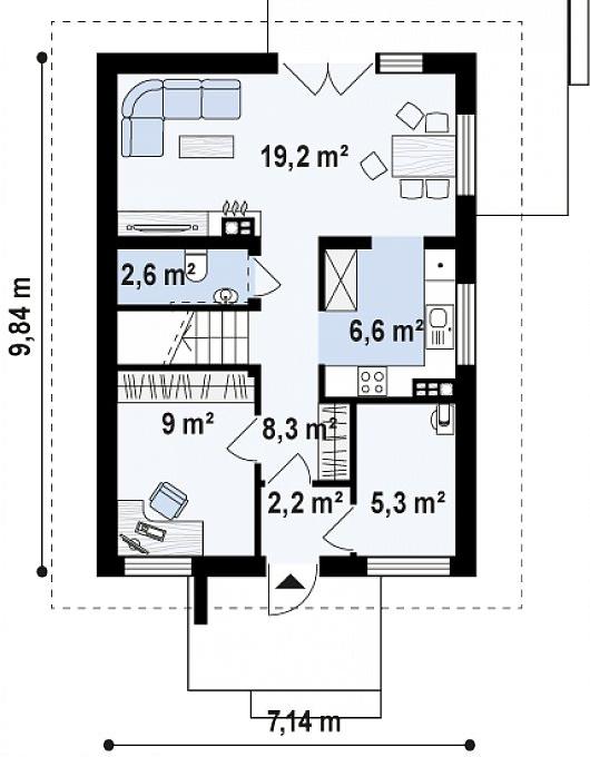 Аккуратный и практичный дом, подходящий, также, для узкого участка.