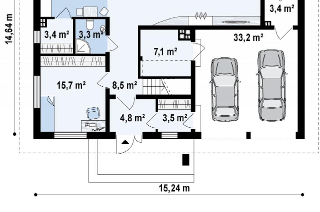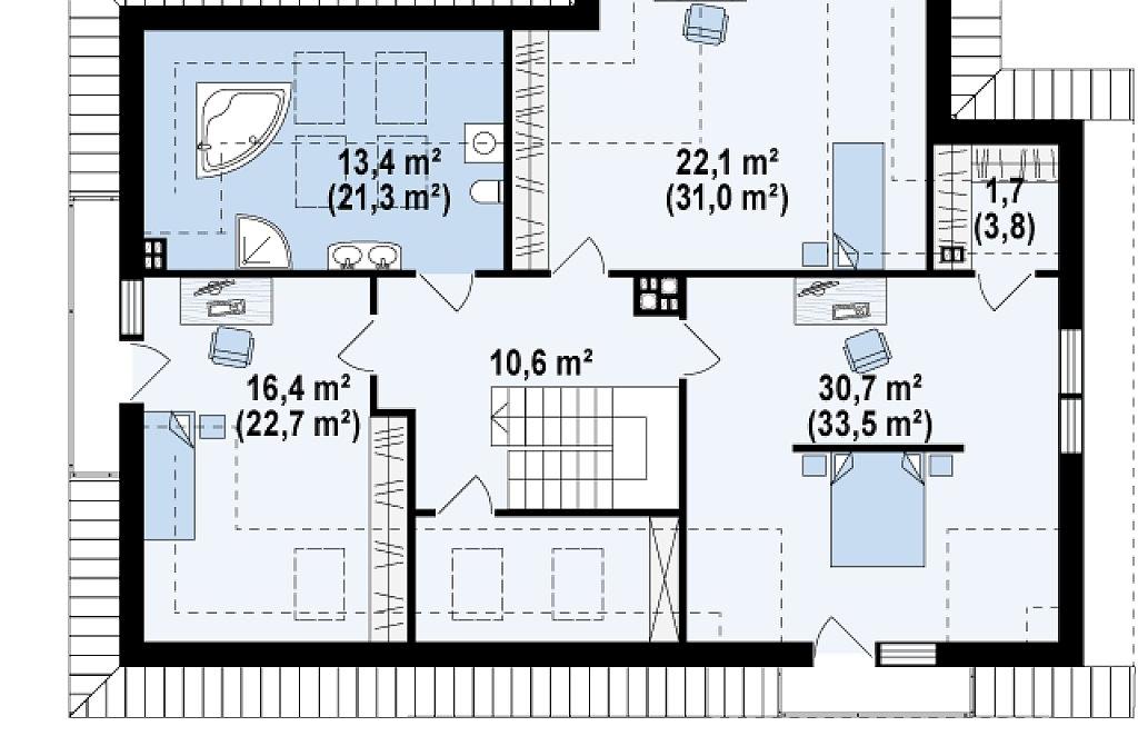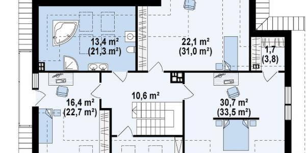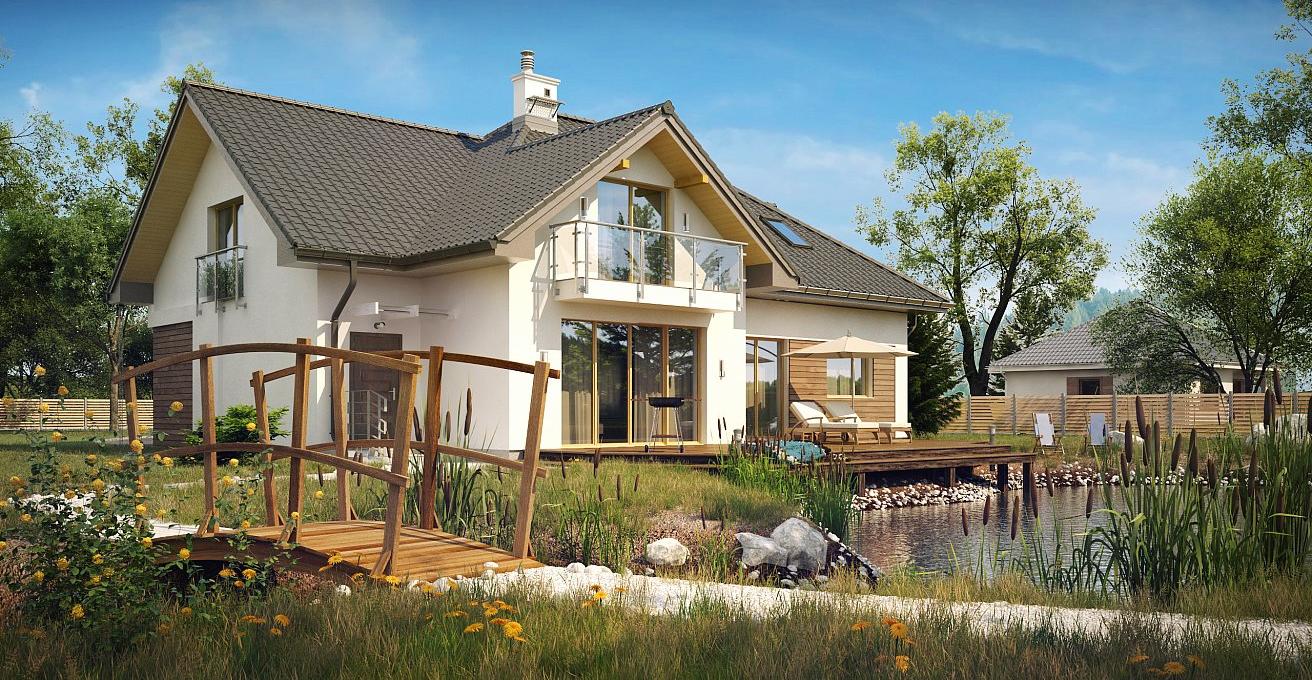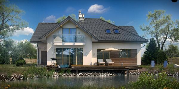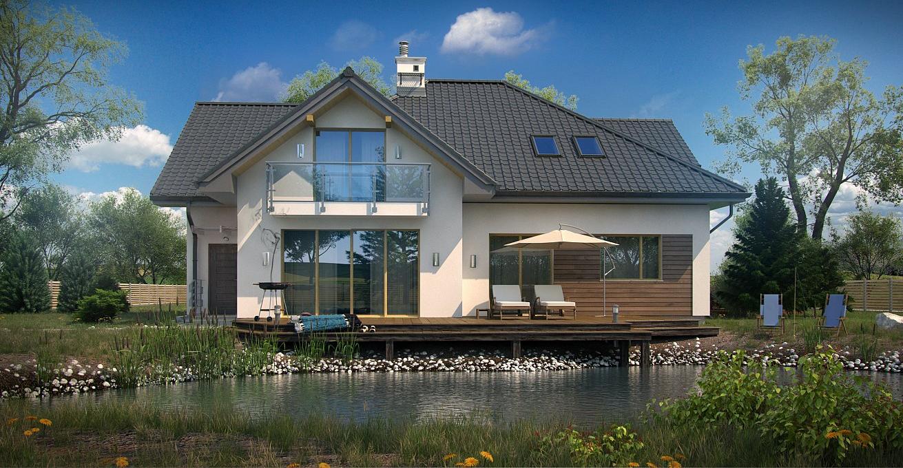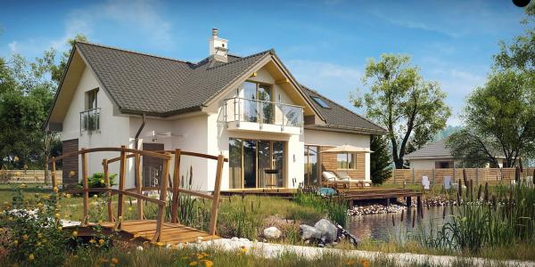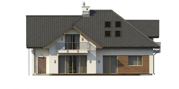 Проект представляет собой уникальный одноэтажный дом с мансардой и гаражом. Тщательно подобранные аксессуары и деревянные элементы фасада придают ему элегантный внешний вид. Интерьеры дома светлые и просторные. Гостиная имеет одно общее пространство с кухней и обеденной зоной. Слева от центрального входа расположена комната, которая может использоваться в качестве кабинета или гостевой комнаты. Дополнительным преимуществом данного проекта является возможность прямого перехода из дома в гараж, сзади которого есть подсобное помещение с доступом извне. На втором этаже находятся три большие спальни, каждая имеет выход на балкон, одна большая ванная комната и дополнительная комната, которая может служить гардеробной. Дом не только великолепно выглядит, но и чрезвычайно функционален и удобен.