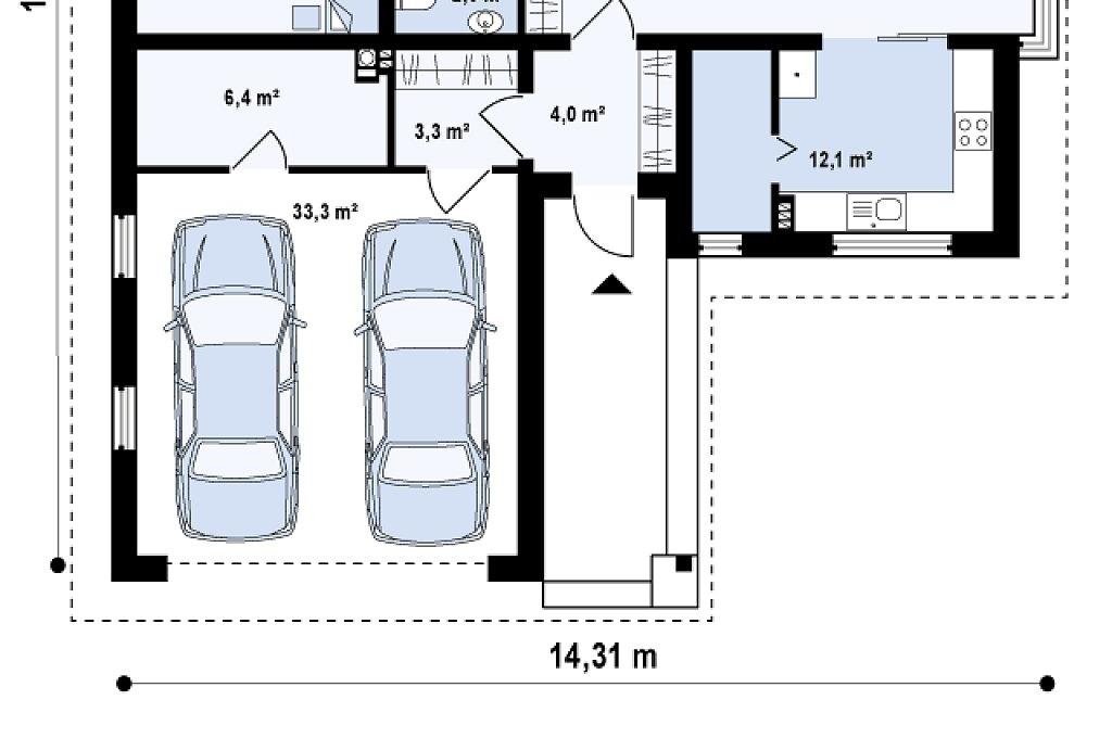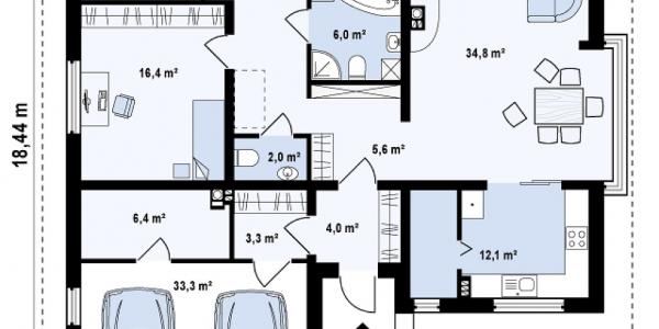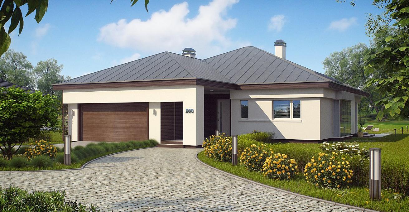 Это удобный одноэтажный дом с гаражом для двух автомобилей, с большой площадью остекления в дневной зоне. Его классический дизайн актуален в любое время и для любой местности.