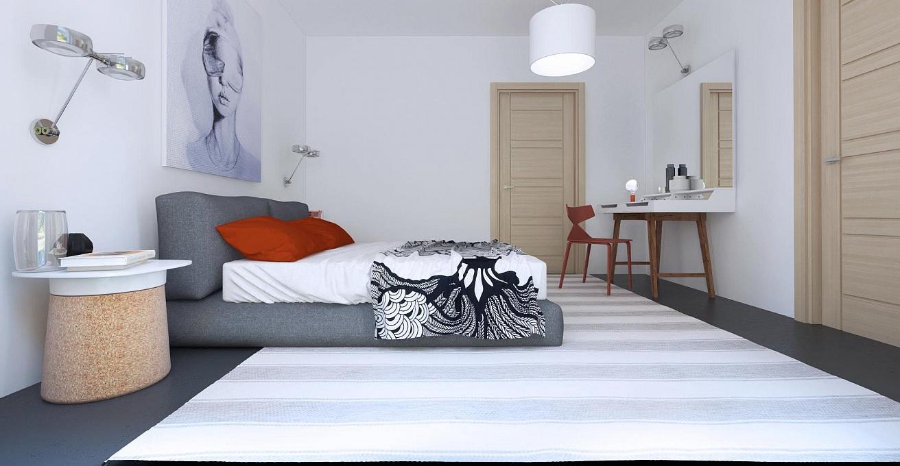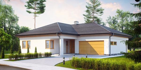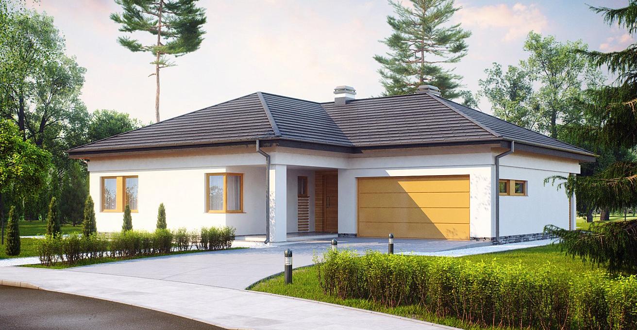 Удобный, одноэтажный дом с боковым гаражом на два автомобиля.